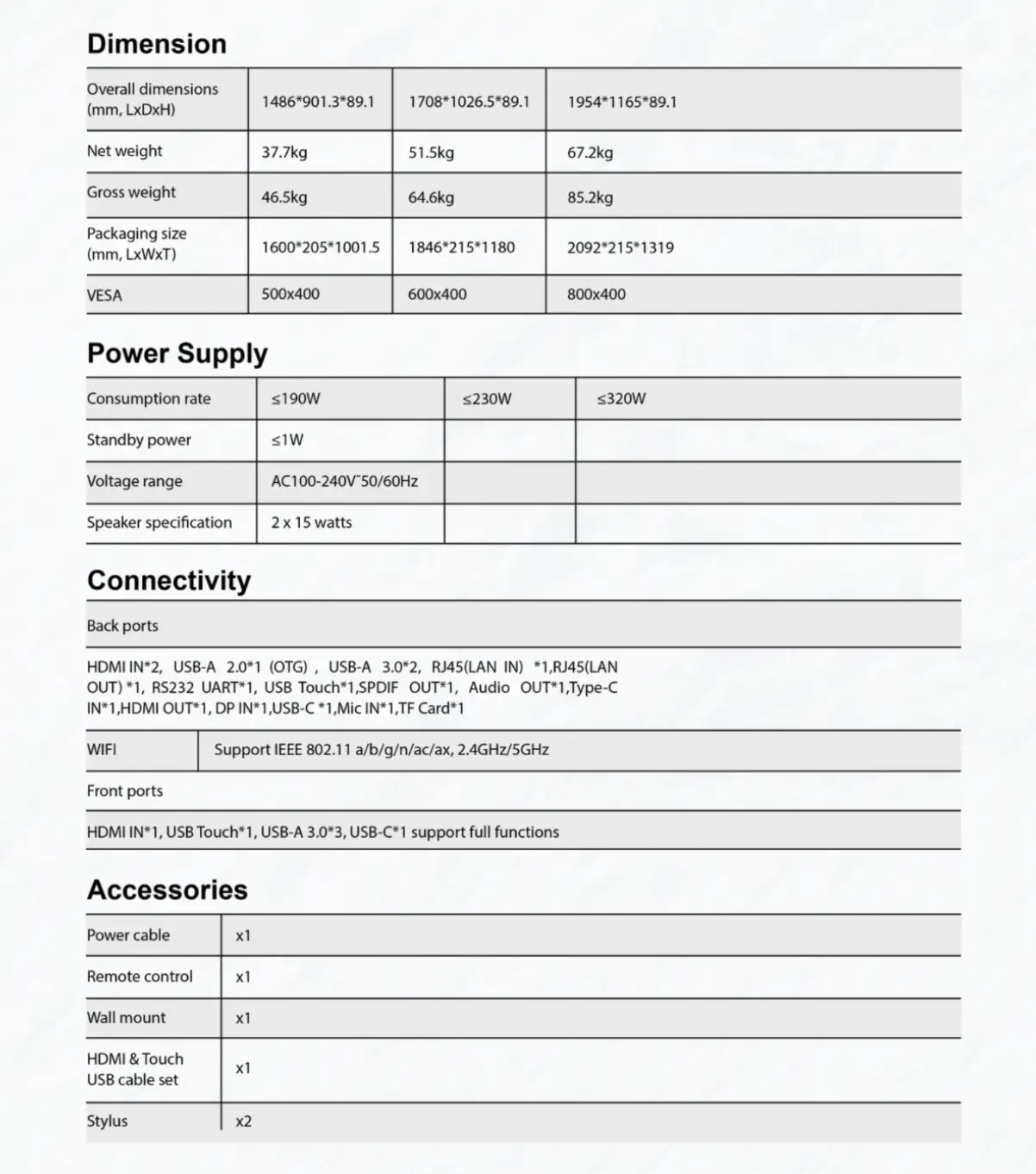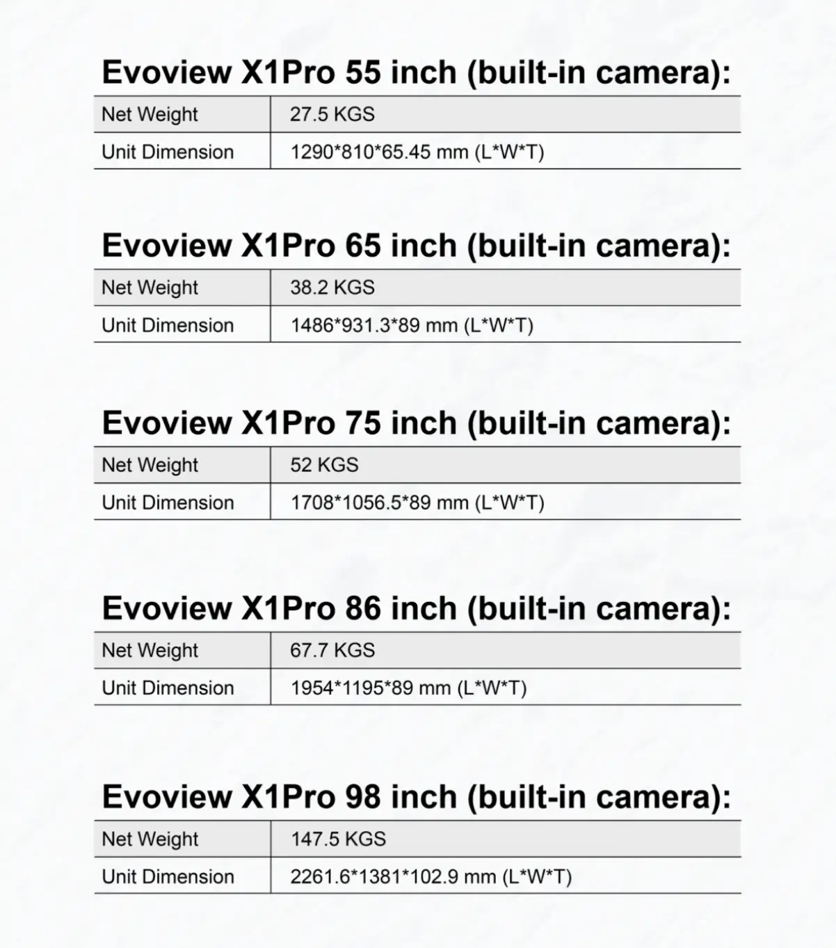 SPECIFICATION X1 PRO Series